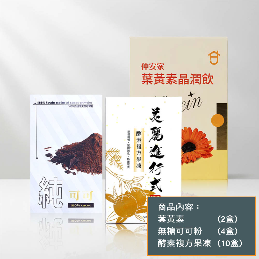 葉黃素(2盒)、無糖可可粉(4盒)、酵素複方果凍(10盒)